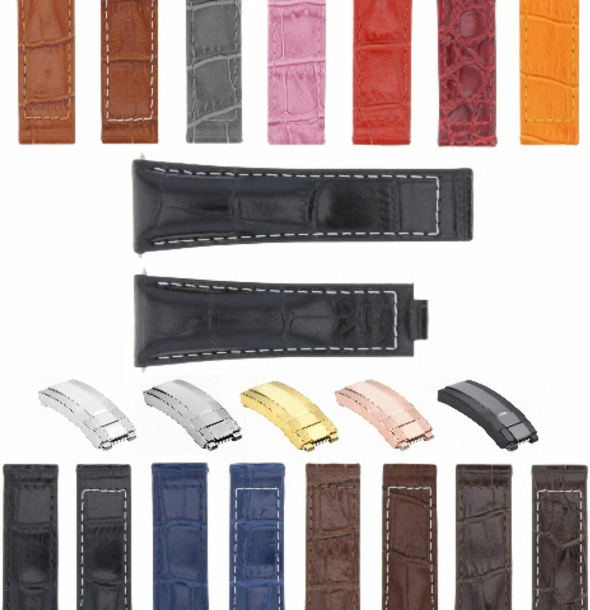 The item for sale is a brand new, high-quality aftermarket replacement leather strap made of Italian leather with padded construction and detailed stitching.This strap features 5.5mm thick padding and waterproof nubuck leather lining on the back for comfort, sweat resistance, and durability.Length Options:Long: 9cm / 7cm (3.5" / 2.75")Medium: 7.5cm / 6.5cm (3" / 2.5")Short: 6.5cm / 5.5cm (2.5" / 2.1")Measurements:Lug Width: 20mmOne End Width: 16mmBuckle End Width: 9mmThickness: 5.5mmAvailable Strap Colors:Black, Blue, Light Brown, Dark Brown, Tan, Grey, Pink, Red, Burgundy, OrangeAvailable Buckle Colors:No Buckle, Silver-Brushed, Silver-Polished Center, Gold, Black, RoseCompatible With:Rolex Daytona 16518, 16519, 16520, 116518, 116519, 116520, 116523Rolex President models with 20mm lugsPackage Includes:1 Complete Leather Strap1 Buckle (If Selected)2 Stainless Steel Spring BarsPlease Verify Your Watch Model And Lug Size To Ensure Compatibility. All Parts Are Model And Size Specific.