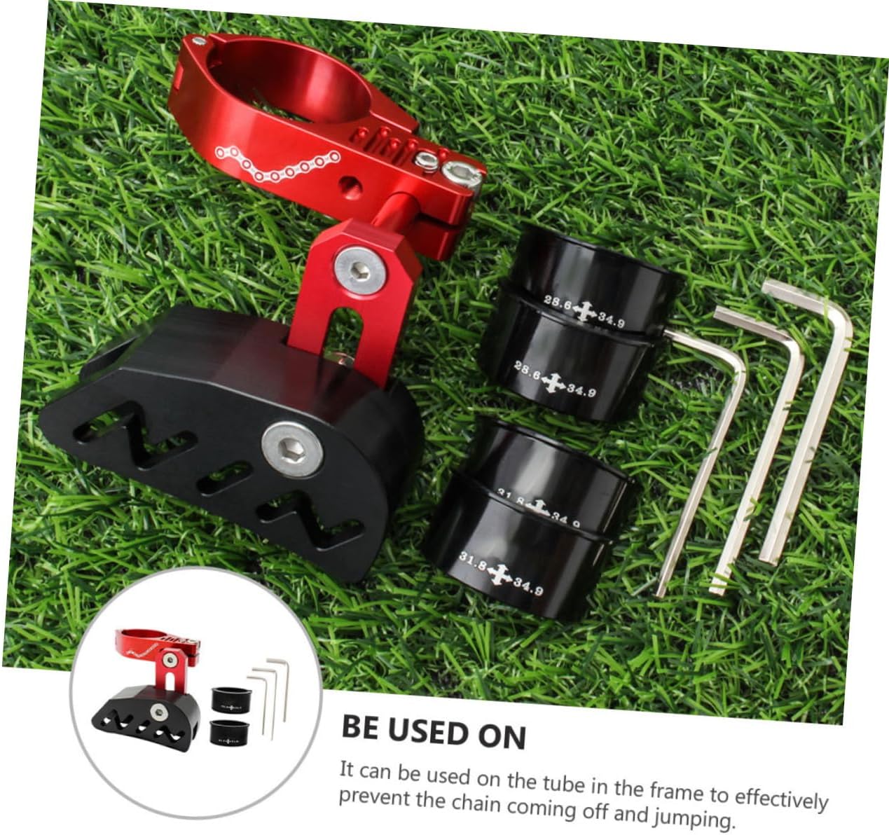 Package Include 1 x chain guide 2 x adapters 3 x wrenches Features -Material: Aluminum Alloy, POM Bike Accessories -Color: Red Chainring Guard -Size: 9.00X8.00X6.00cm/3.54X3.14X2.36in Single Disc Chain Guide - Lightweight and stable without chaindrop, and the anti-chain drop rate reaches up to Chain Guide. - It is made of high-grade aluminummaterial, which is strong and , strong and not easy torust Folding Chain Tensioner. - The appearance is simple and generous, agreat addition to your bicycle Bike Tensioner. - Prevent the chain from falling off andreduce the tooth-like chain Bike Protector. - It can be used on the tube in the prevent the chain coming off and jumping Bike Chain Deflector.Goods DescriptionChainring Guard That's because our product can meet your need.Bike Chain Guide Adopted of premiummaterial, it is and for long time use.Chain Guide If you are looking for a professional andaffordable chain guide stabilizer tensioner, then your research is overhere.Bike Chain Stabilizer It is not easy to getdeformed and bring you much convenience